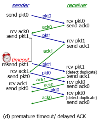 - 수신자는 pkt1을 또 다시 수신받는다. 그러나 pkt1은 이미 받은 적이 있기 때문에 해당 메시지를 버린다.