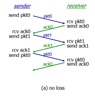 - 송신자는 ack0을 보고 '아하 pkt0이 잘 도착했구나, 이제 다음거를 보내야지'하고 pkt1를 전송한다.